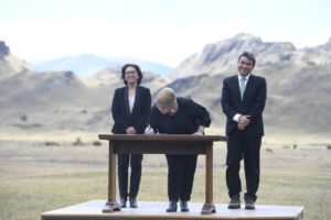 Hasta la comuna de Cochrane, en la región de Aysén, llegó la Jefa de Estado, Michelle Bachelet, junto a los ministros de Bienes Nacionales, Nivia Palma, y de Medio Ambiente, Marcelo Mena, para encabezar la ceremonia de firma de decretos para materializar la creación de la Red de Parques Nacionales de la Patagonia.