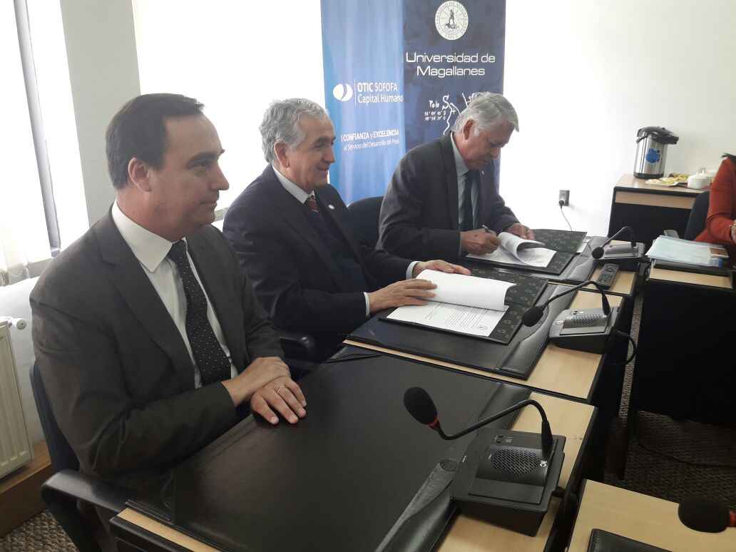 Encabezaron la firma el Intendente Regional don Jorge Flies, el rector de la casa de estudios don Juan Oyarzo y el representante del OTIC Sofofa, don Victor Figueroa, la Gobernadora Provincial de Magallanes doña Paola Fernández, el Seremi del Trabajo y Previsión Social don Carlos Abarzua y la Directora Regional de SENCE doña Carolina Saldivia Andrade, acompañados del cuerpo directivo de la universidady del equipo que desarrollará el trabajo investigativo en el territorio.