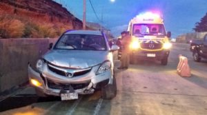 El accidente ocurrió hacia las 20:45 horas de la noche de ayer lunes 26 de febrero, a la altura del kilómetro 12 de la ruta que ingresa a la ciudad de Punta Arenas, cuando el conductor de un vehículo Greatwall H5 Station Wagon, y por causas que se desconocen, impactó las barreras de contención existentes en el lugar por trabajos en la vía que se están realizando, resultando dos personas lesionadas, las que fueron trasladadas por el SAMU al Servicio de Urgencias del Hospital Clínico.