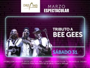 Sábado 31 se efectúa Tributo a los BEE Gees en Casino Dreams de Punta Arenas Ovejero Noticias 29 de marzo de 2018 NOTICIAS, TITULARES Compartir1TwittearCompartirPin1 Compartir