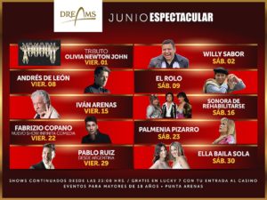 Prepárate para la cartelera de espectáculos del mes Junio en Dreams Punta Arenas Ovejero Noticias 23 de mayo de 2018 NOTICIAS, PUNTA ARENAS, TITULARES Una variada programación de artistas y humoristas es lo que tiene preparado el Casino de Eventos de Dreams para el mes de junio. Dale un vistazo también al último show de mayo programado para este 25 y 26. CompartirTwittearCompartirPin0 Compartir