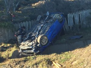 Diversos accidentes de tránsito ocurrieron durante la madruga de este domingo y transcurso de la mañana donde varios conductores protagonizaron accidentes de tránsito tanto en la ciudad como en la ruta 9 que une Punta Arenas y Puerto Nstales. Uno de ellos se registró en el kilómetro 10 de la ruta 9 norte donde el conductor de este vehículo deportivo terminó volcado, sin embargo, pese a los daños sufrido por el móvil el conductor se fugó del lugar, siendo encontrado por personal de la SIP de Carabineros.