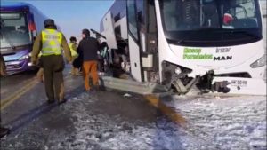 Hacia el mediodía de hoy miércoles 20 de junio, en el kilómetro 125 de la ruta 9 norte, se registró un accidente con sólo daños materiales, de un transporte comercial de Buses Fernandez, el cual, a raíz de la escarcha presente en la ruta y las fuertes ráfagas de viento, habría perdido el control del vehículo de pasajeros, impactando una barrera de contención, la cual habría traspasado el compartimento de carga, destruyendo algunos equipajes.