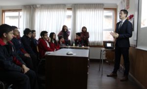 | Punta Arenas, 06/06/2018.- Estudiantes de segundo y tercero medio del Colegio Cruz del Sur, fueron capacitados por el Fiscal Jefe de Punta Arenas, Fernando Dobson Soto, en materia de delitos sexuales y misión del Ministerio Público.