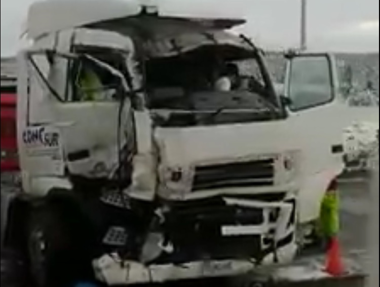 Cerca de las 17 horas se registró un accidente en el kilómetro 160 de la Ruta 9 Norte, que une a Puerto Natales con Punta Arenas, entre un bus de la empresa Bus Sur y un Camión de la empresa Cono Sur. Hasta el momento los antecedentes hablan de que ambos conductores habría fallecido producto de la colisión frontal.