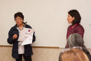 Se tuvo el testimonio de la presidenta de la Agrupación Patagonia Hecha Mano, Katia Vergara Ojeda, relató la experiencia de haberse adjudicado el fondo en su primera versión el año 2017. “Nosotras postulamos a este fondo porque estábamos buscando oportunidades de financiamiento que nos permita aumentar la productividad en la elaboración de artesanías. Con este dinero adquirimos ruecas, las que usamos actualmente para hilar y producir nuestra propia lana, lo que sin duda ayuda a bajar el costo de la producción, ya que antes la teníamos que comprar. Yo invito a todas las emprendedoras a participar, es un formulario sencillo y tienen hartas posibilidades de ganar.”