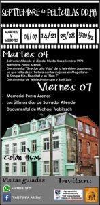 Durante el mes de septiembre se exhibirán películas en Casa de los Derechos Humanos de Punta Arenas Ovejero Noticias 3 de septiembre de 2018 ARTES, CULTURA Y PATRIMONIO, PUNTA ARENAS Todos los martes y viernes durante el mes de Septiembre se exhibirán películas relativas a Derechos Humanos en la Casa de los Derechos Humanos ubicada en Avenida Colón N° 636 de Punta Arenas. cada sesión se iniciara desde las 19:00 horas. CompartirTwittearCompartirPin0 Compartir