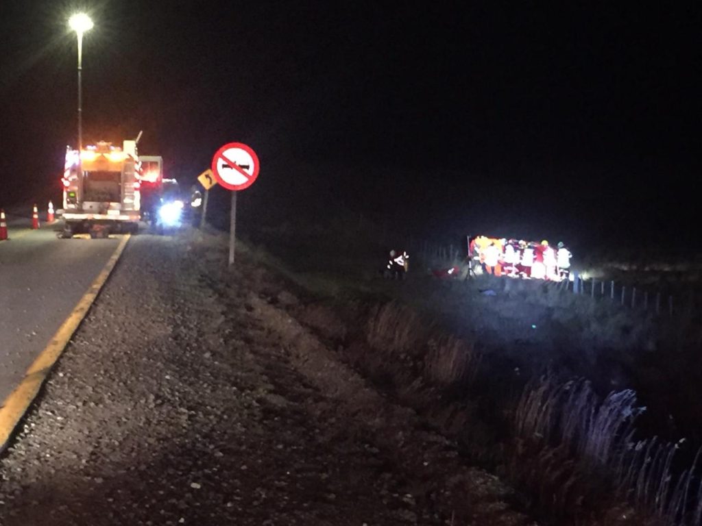 Las primeras informaciones indican que se trata de un vehículo menor con patente argentina de Río Gallegos que volcó a un costado de la ruta, cuando se dirigía a velocidad al paso fronterizo Integración Austral en Monte Aymond. El vehículo resultó completamente destruido ya que volcó dando varias vueltas, quedando a más de 20 metros de la ruta.