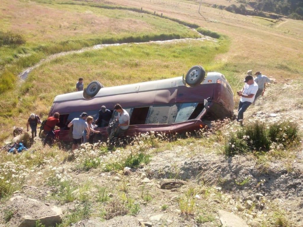 19 pasajeros y tres tripulantes lesionados en volcamiento de un minibus ocurrido camino a Cerro Castillo