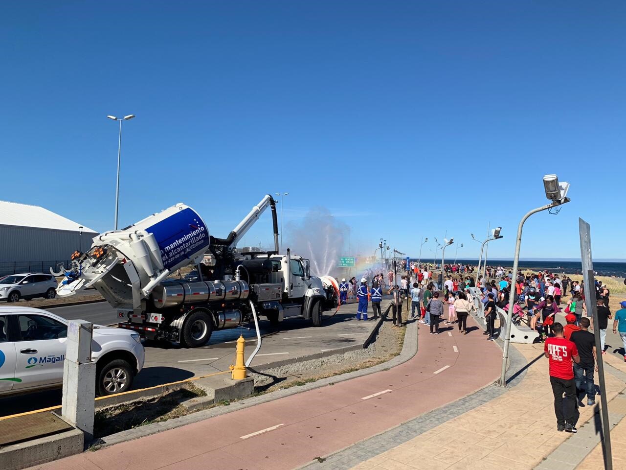 “Quisimos llamar la atención de la comunidad y por ello mostramos uno de los equipos recientemente adquiridos por la compañía. Se trata de un camión combinado (Vactor), que viene a reforzar las tareas de limpieza de colectores. El equipo cuenta con el doble de capacidad de carga y mayor capacidad de succión”, destacó Eric Bascur Norambuena, gerente de Clientes de Aguas Magallanes.