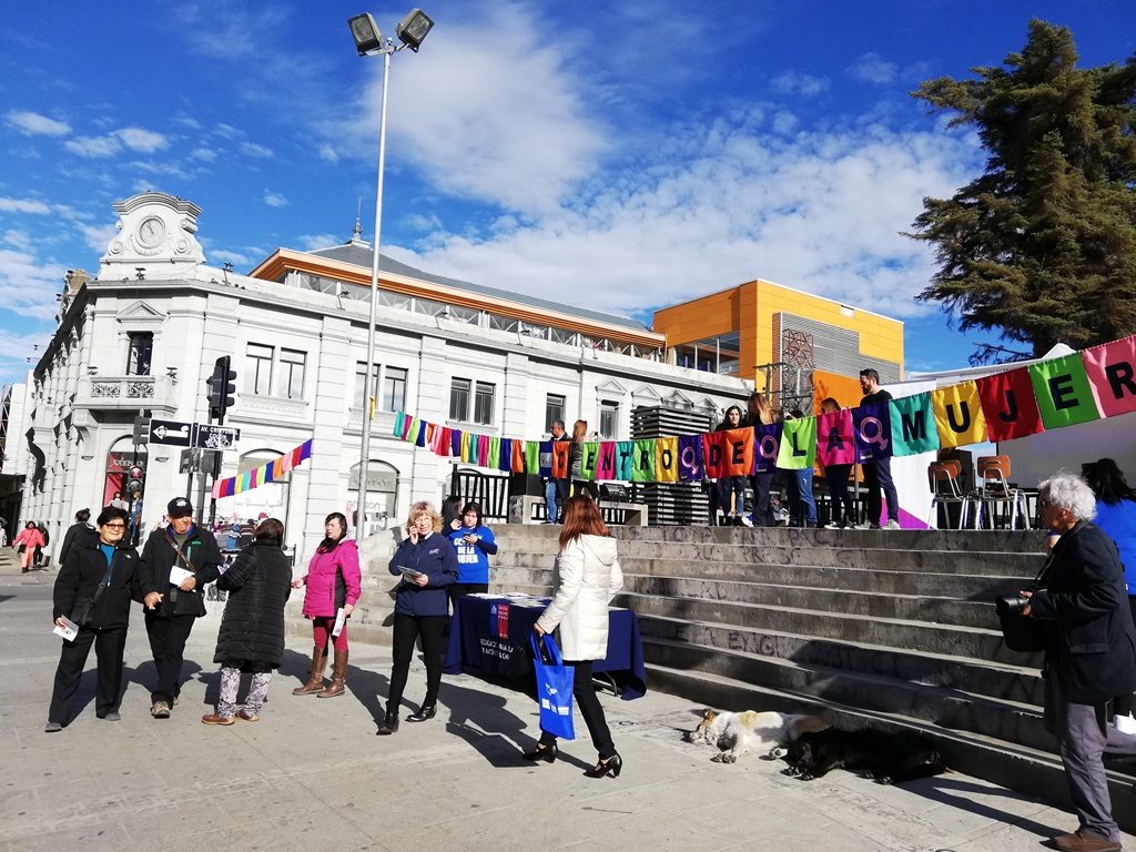 “Tener confianza y no tener miedo a decir las cosas… Callar no es bueno… Pasaron años. Solo cuando caí en estado de coma y Dios me dio una segunda oportunidad de seguir viviendo, de ahí que comencé a defender mis derechos y el de las mujeres. Dije ‘Ya no más. Basta’”. Así comenzó el conmovedor testimonio de Rosa G.M., sobreviviente de violencia y otrora usuaria del Centro de la Mujer de Punta Arenas, quien junto al equipo de profesionales de los dispositivos de SernamEG llevaron a cabo actividad de sensibilización y prevención de violencia contra las mujeres en la Plaza de los Derechos Humanos de Punta Arenas.
