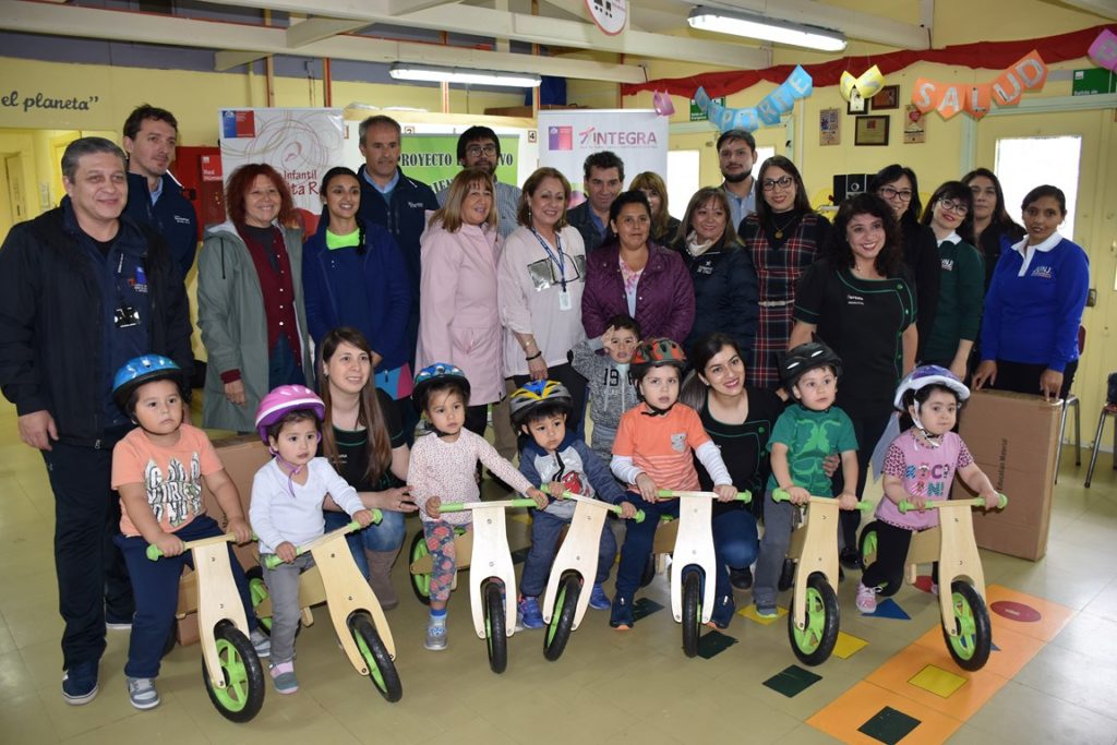 Con emoción niños y niñas del Jardín Infantil Magallanes de Fundación Integra estrenaron las bicicletas sin pedales que fueron entregadas a su establecimiento al conmemorarse el Día Mundial de la Actividad Física. Estos implementos fueron adquiridos en el marco del Plan Trienal de Promoción de la Salud de la Municipalidad de Punta Arenas, enmarcado en la Estrategia de Municipios y Comunidades Saludables que desarrolla la SEREMI de Salud de Magallanes.