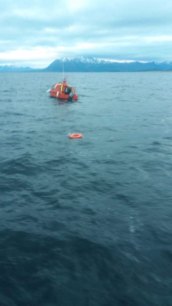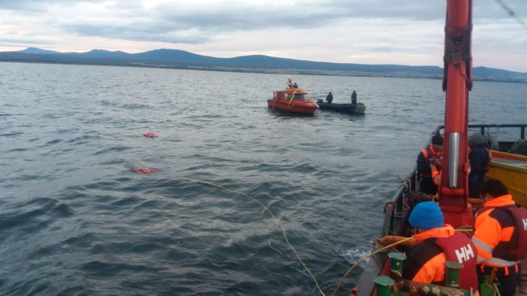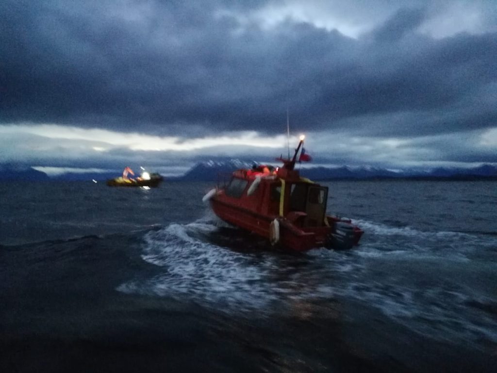 Las imagenes muestran parte de los trabajos realizados en seno Skyring para la localización de la embarcación.