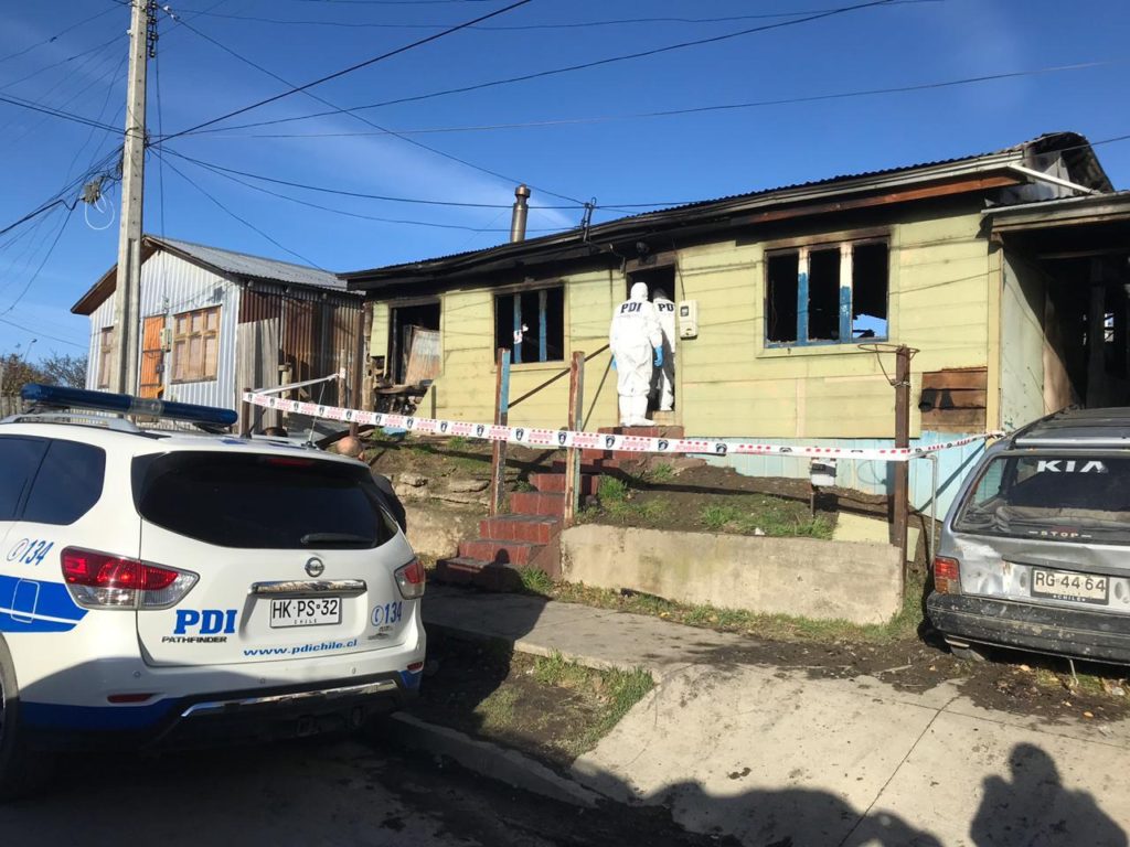 Detectives de la Brigada de Homicidios junto a peritos del Laboratorio de Criminalística, por orden de la Fiscalía Local de Puerto Natales, realizan la investigación del fallecimiento de una persona, tras un incendio registrado la madrugada de este lunes 20 de mayo en una vivienda en Puerto Natales.