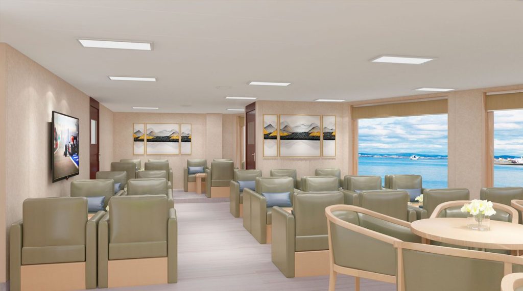 Su habitabilidad está adaptada para más de 244 pasajeros a bordo y contará con cafetería, comedor, sala de actividades, enfermería, 3 decks exteriores y una cabina pasajeros con capacidades distintas.