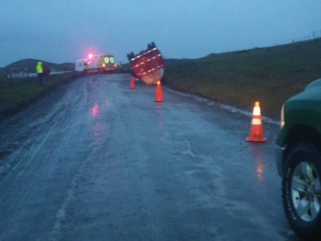 Volcamiento de camión con gas licuado en Tierra del Fuego