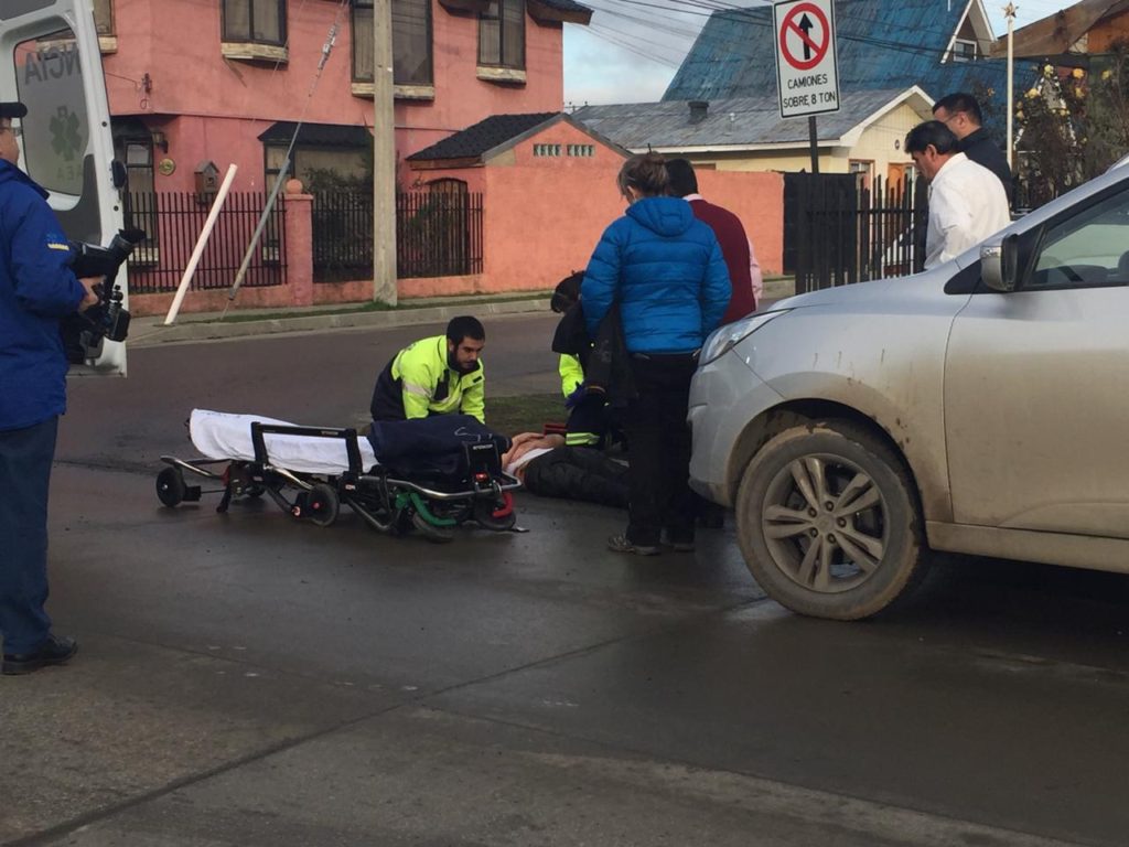 Pasadas las 13 horas un estudiante de 13 años del colegio Alemán de Punta Arenas resultó atropellado en calle José González esquina pasaje Luis Lagos Ortiz. El adolescente, según preciso un testigo, cruzó por un paso no habilitado, no advirtiendo la aproximación del vehículo que circulaba por el lugar.