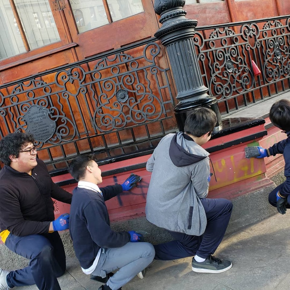 Estudiantes del Instituto Superior de Comercio de Punta Arenas contribuyen voluntariamente con la limpieza de la Plaza Muñoz Gamero