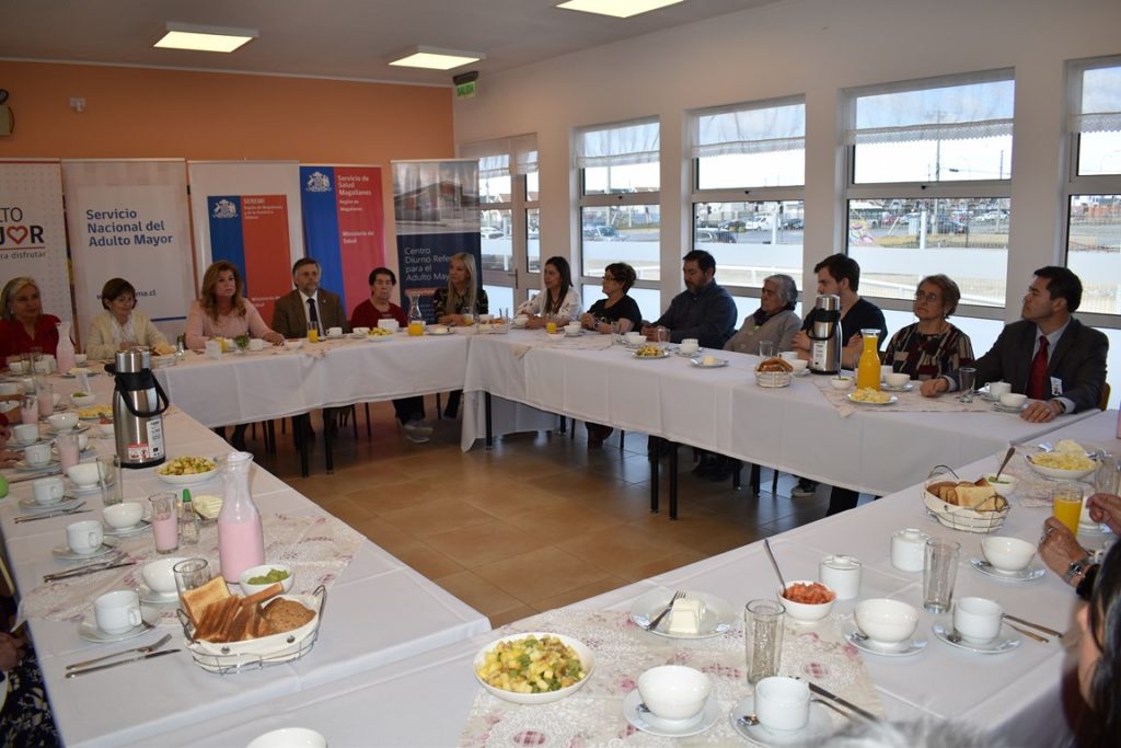 Con la finalidad de conocer y conversar con los usuarios del Centro Diurno Referencial de Personas Mayores sobre las nuevas cinco patologías que fueron incluidas en el AUGE, el Intendente Regional José Fernández visitó las dependencias de este establecimiento junto a la SEREMI de Salud, Mariela Rojas; el Director (S) del Servicio de Salud Magallanes, Ricardo Contreras; la Directora de SENAMA, Rebeca Aguilante; la Decana de la Facultad de Ciencias de la Salud de la Universidad de Magallanes, Mariela Alarcón, y otras autoridades locales.