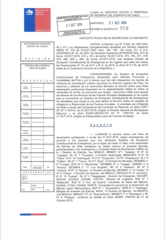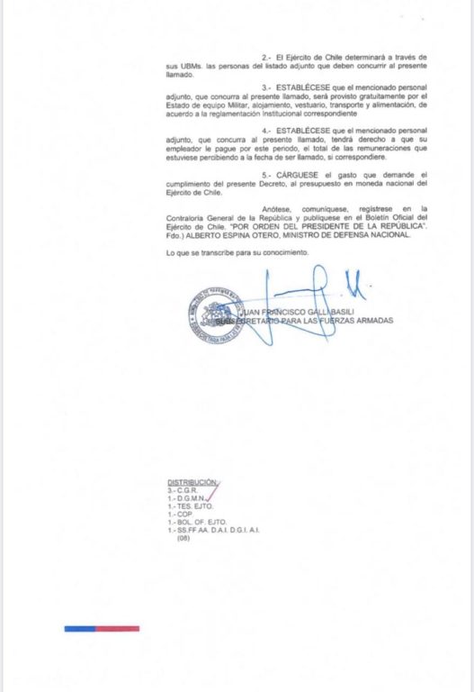 El decreto firmado por el subsecretario para las Fuerzas Armadas, también establece que el Ejército determinará a través de sus UBMs las personas del listado adjunto que deben concurrir al llamado.