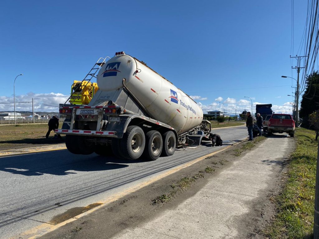 Un camión de la firma Trading Patagonia S.A. que circulaba esta mañana de martes 26 de noviembre por avenida Costanera hacia las 09.15 horas, al ingresar a avenida Bulnes, a pocos metros de Tres Puentes y, por razones que se desconocen, se le desacopló la carga consistente en un estanque sin contenido.