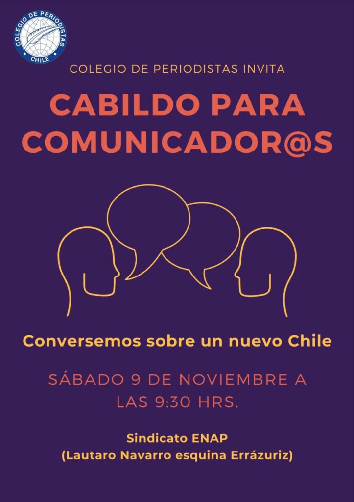 Este sábado 9 de noviembre se efectuará en el local del Sindicato de Trabajadores de ENAP de Punta Arenas un cabildo para comunicadores convocado por el Colegio de Periodistas de Magallanes.