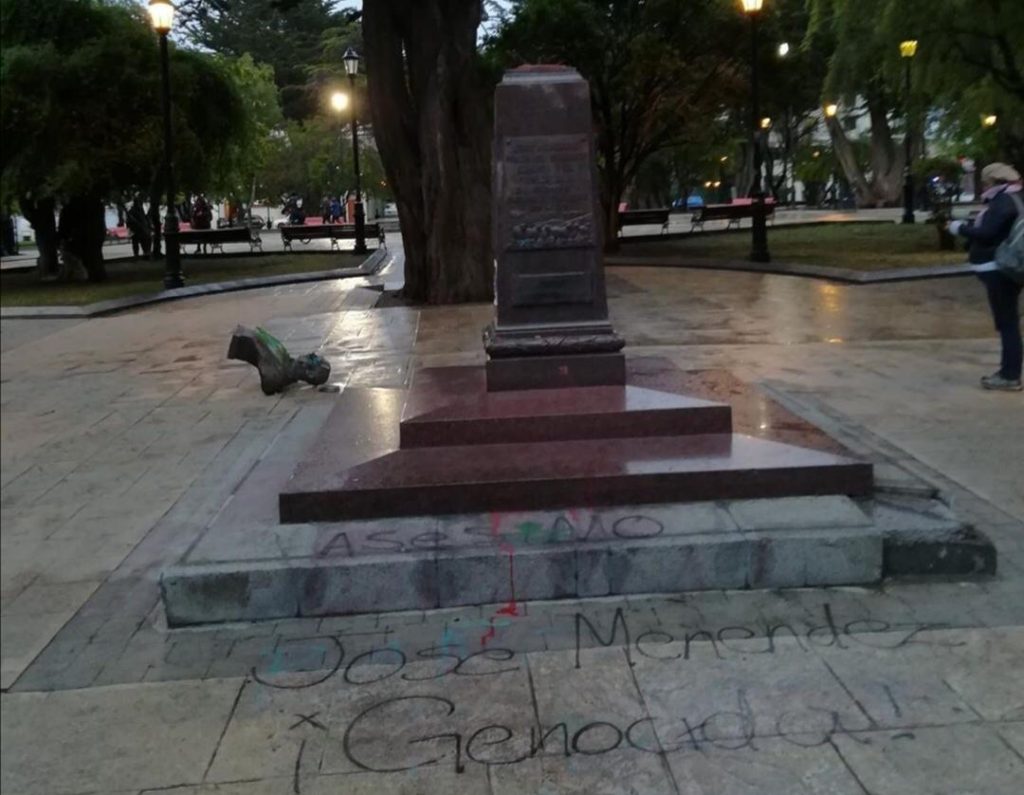 Destruyen monumento a José Menéndez en la Plaza Muñoz Gamero de Punta Arenas