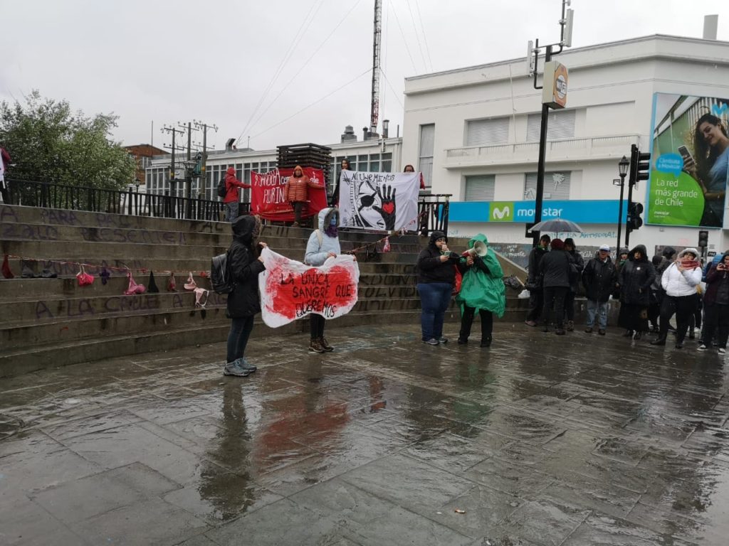 La lluvia intensa que cayó sobre Punta Arenas no fue obstáculo para las organizaciones feministas de esta ciudad ayer lunes 25 de noviembre.