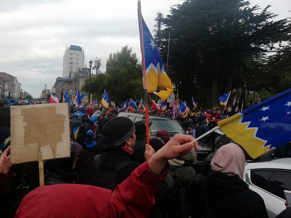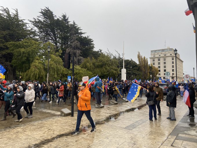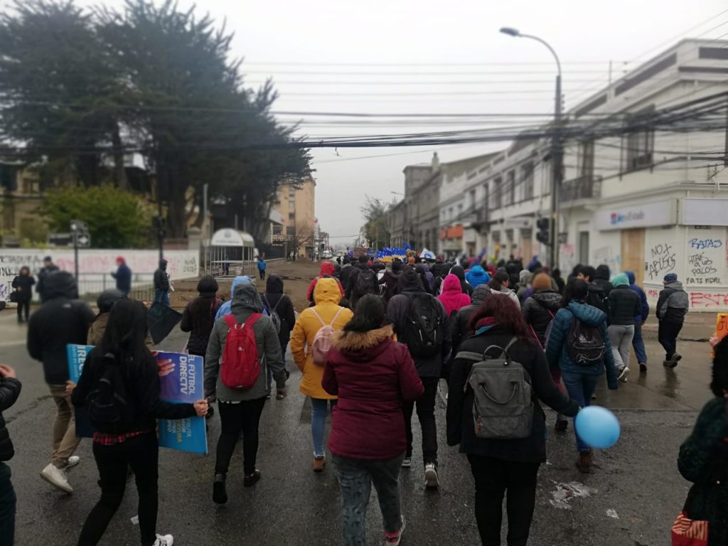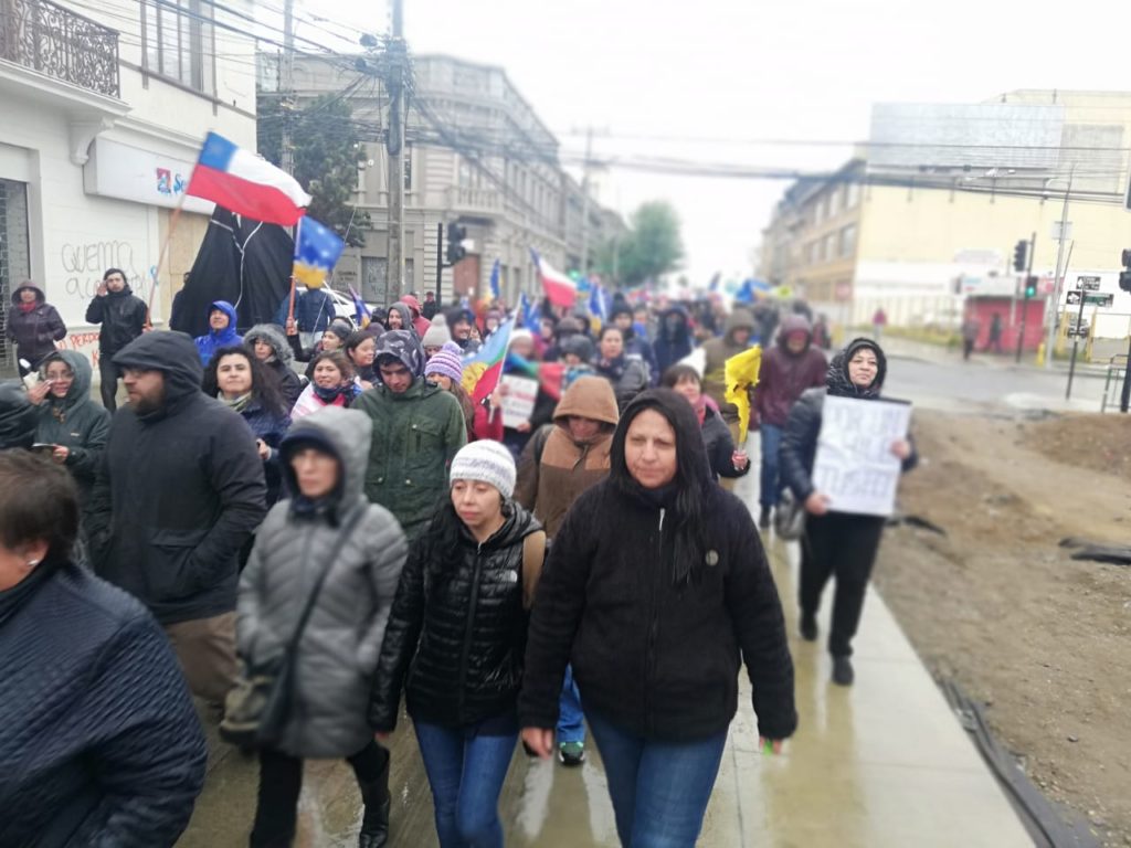 La manifestación, completamente pacífica y sin incidentes, portaba banderas chilenas, negras y de la región, y se desplegó por las calles del centro de la ciudad, Bories y calle Magallanes.