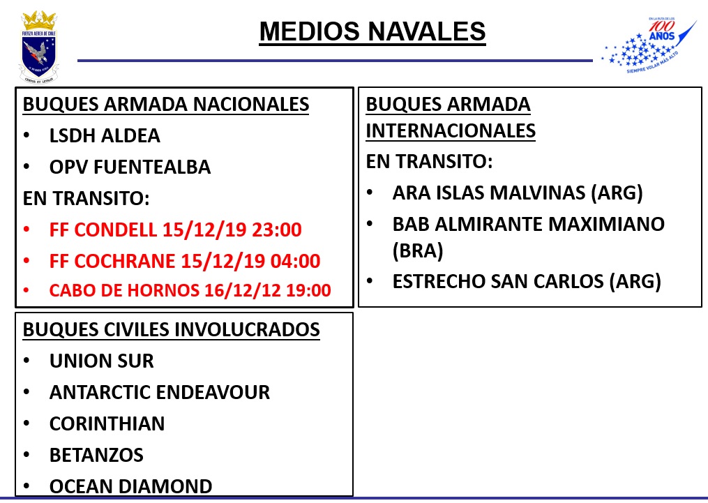Los siguientes son los medios navales que están operando en la búsqueda.