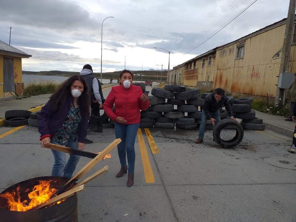 En la avenida Costanera de Porvenir, un grupo de manifestantes formaron una barricada con neumáticos y fuego a fin de impedir la circulación de vehículos y exigiendo a las autoridades regionales y nacionales que se decrete el cierre de la comuna y de la provincia de Tierra del Fuego, como una medida preventiva contra la extensión de la epidemia de COVID 19 en la región y en el país.