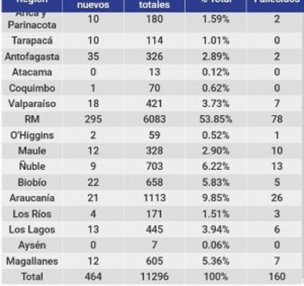 El siguiente gráfico muestra la evolución del Covid19 en las regiones y ciudades del país.