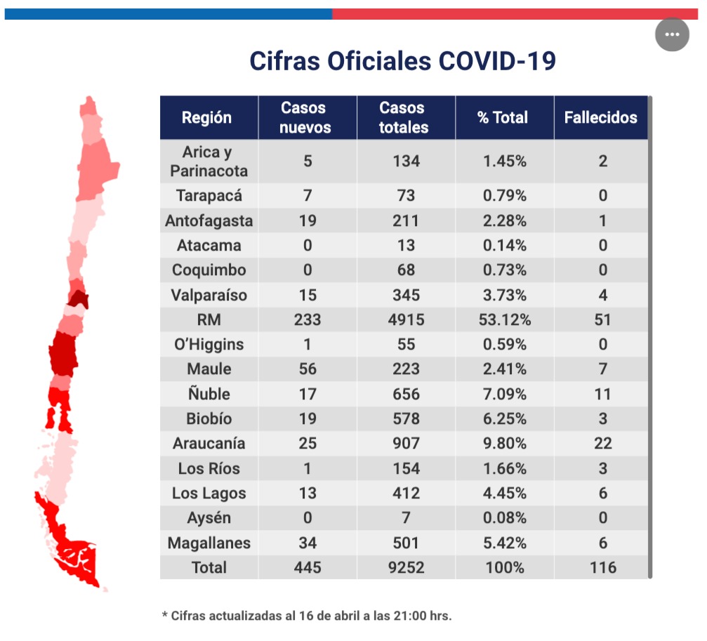 El total de casos covid19 en Magallanes es de 501 personas, datos registrados a las 21.00 horas de este jueves 16 de abril.