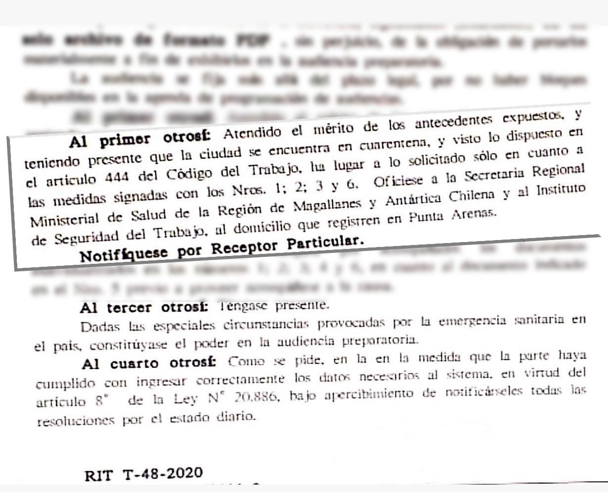 El tribunal laboral también precisó que tambien se debe eliminar de inmediato el denominado turno C, que corresponde a la jornada de 20,30 horas a 00,30 horas incluso después del toque de queda. Desde la empresa señalaron que aún no han sido notificados de este documento por lo que no podrán pronunciarse al respecto. La empresa será informada de lo resuelto durante la jornada de este martes.
