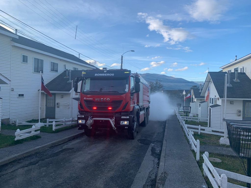 Es esta manera el pasado 31 de marzo, voluntarios de la 1era Compañía “Arturo Prat” del Cuerpo de bomberos de Puerto Williams con apoyo de personal del Distrito Naval Beagle, aplicaron el compuesto químico desinfectante en distintos sectores de la ciudad como el pontón “Micalvi” y poblaciones, brindando seguridad sanitaria a la población de la localidad, esto gracias a la donación de hipoclorito que realizó la empresa “Aguas Magallanes” para combatir la propagación del virus.