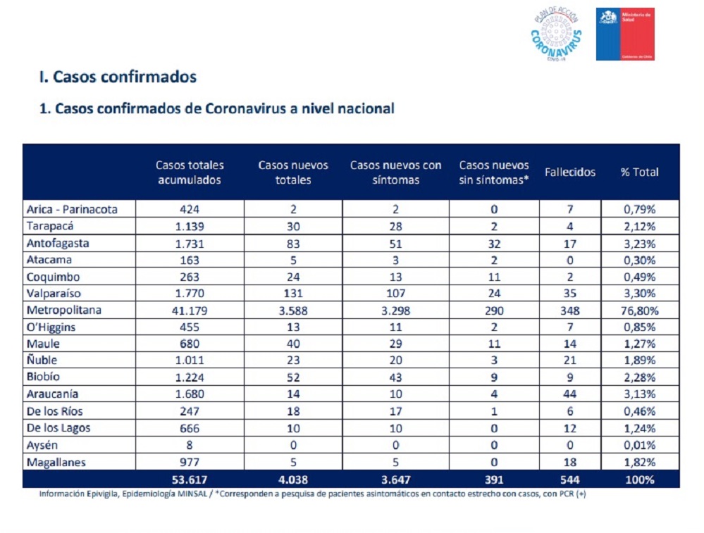 De esta forma, a la fecha Magallanes registra 977 (novecientos setenta y siete) casos en total de coronavirus, de acuerdo al siguiente detalle: