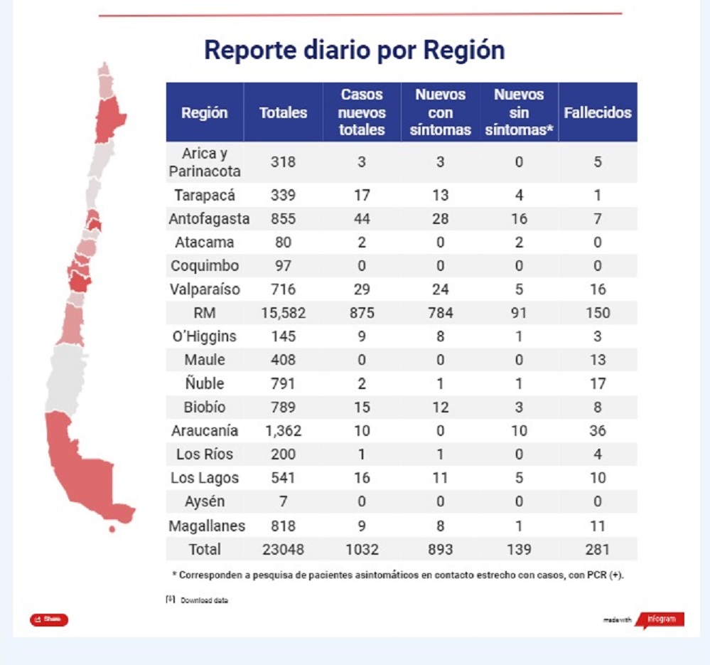 De esta forma, a la fecha Magallanes registra 818 casos en total de coronavirus, 781 de Punta Arenas, 19 de Puerto Williams, 8 de Porvenir, 8 de Puerto Natales, 1 de Primavera y 1 de San Gregorio. Esto con corte a las 21.00 horas del día martes 5 de mayo. La tasa acumulada de casos en Magallanes es de 459 por 100 mil habitantes.
