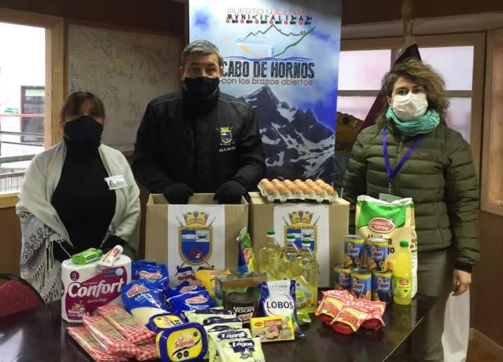 Durante esta jornada de martes 19 de mayo de 2020, el alcalde de Cabo de Hornos, Patricio Fernández, junto a la jefa del Departamento de Desarrollo Comunitario, Pamela Tapia y la Asistente Social de la casa edilicia, Evelyn Gutiérrez, dieron a conocer a la comunidad, la nueva canasta social municipal implementada en tiempos de pandemia.