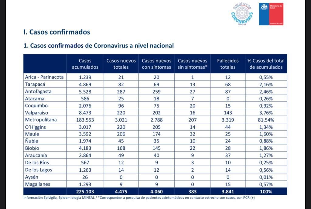 En materia de exámenes, a la fecha a nivel regional se han realizado 9.824 PCR. La positividad es de 13,16%.