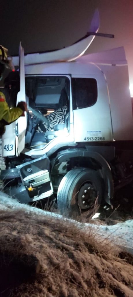Carabineros de la tenencia Cerro Sombrero, Tierra del Fuego en conjunto con la Brigada de Bomberos de la comuna de Primavera, participó en la noche del 17 de junio en el rescate de un conductor atrapado dentro de la cabina de su camión, el cual sufrió un accidente de transito en la ruta Ch-257. km 90.