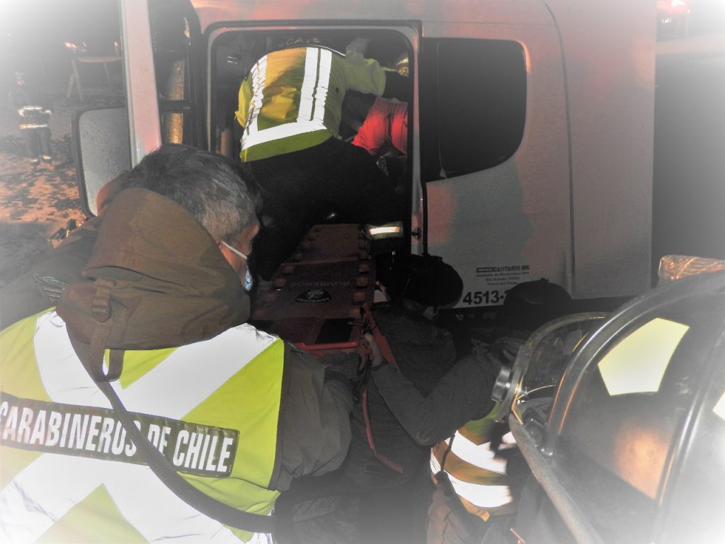 El personal policial logró controlar la hipotermia del conductor que llevaba minutos accidentado y proceder a la espera de personal de Bomberos, quienes en conjunto, lograron rescatarlo, sacarlo de la cabina y trasladarlo a la clínica de Cerro Sombrero.