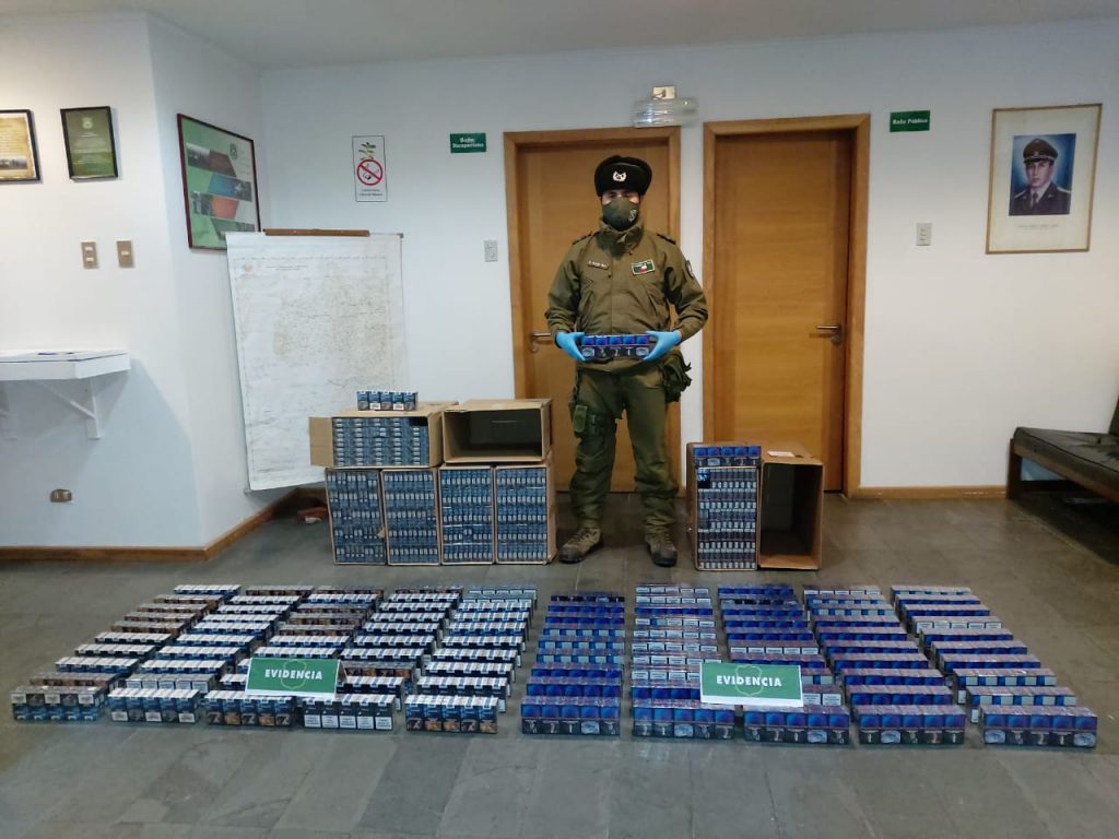 Hoy jueves 18 de junio a las 11:30 hrs. personal de Carabineros de la Tenencia de San Sebastián en circunstancias que realizaban un control vehicular preventivo por la Ruta Y-895, descubrieron que una camioneta con la patente PPU- FKDC-88, transportaba en la carga 4.000 cajetillas de cigarrillos, por lo cual se procedió a la detención de 2 sujetos de nacionalidad chilena.