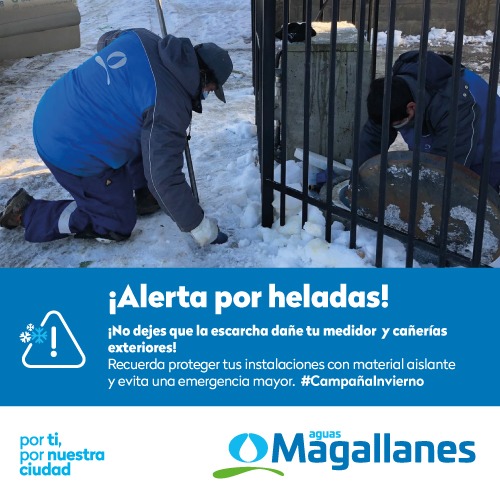 Ante la llegada de un nuevo frente de bajas temperaturas en la región de Magallanes, Aguas Magallanes, recuerda la importancia de proteger -con material aislante adecuado- el medidor, cañerías e instalaciones sanitarias exteriores.