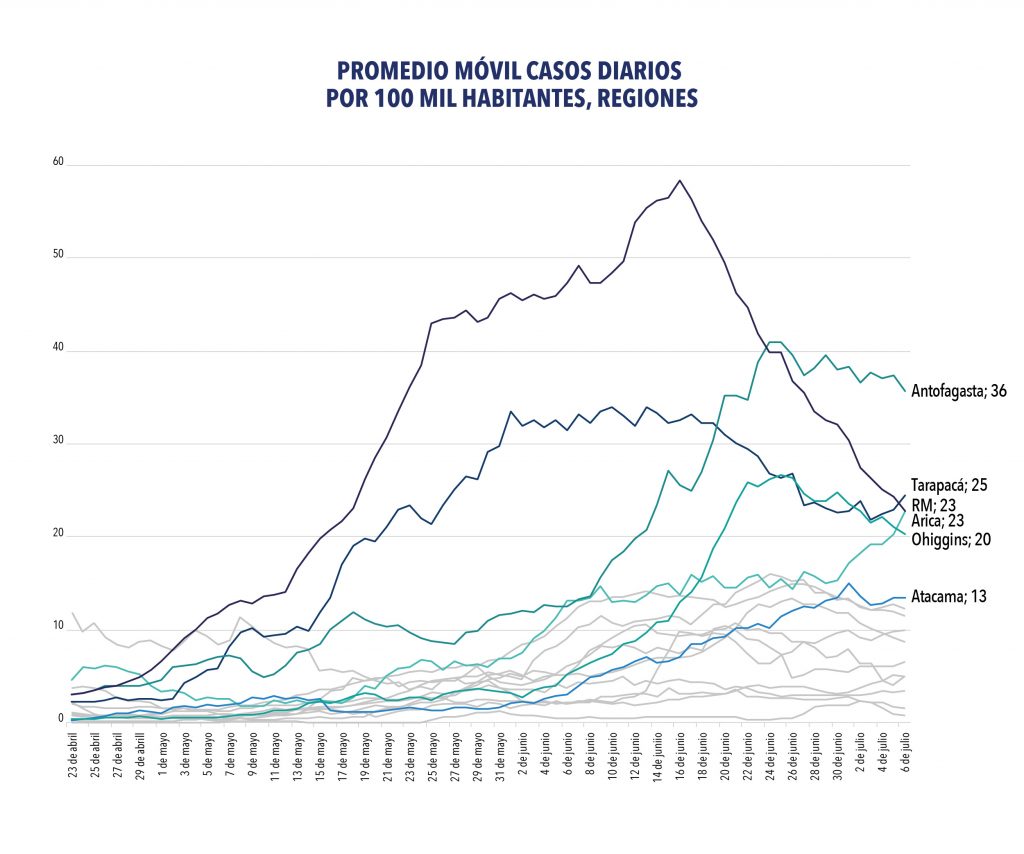 | Cifras de hoy La situación de la región de Arica se sigue agravando (ver Figura 1d) y sugerimos a la autoridad que considere el medidas de confinamiento en la comuna de Arica, donde se concentra la mayor cantidad de casos en la región (ver último informe epidemiológico). |