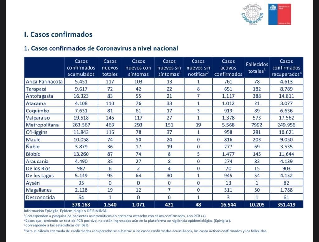 2.036 de Punta Arenas. (Esta cifra incluye casos en estudio, en verificación para ver si ya estaban notificados en el sistema EPIVIGILA)
