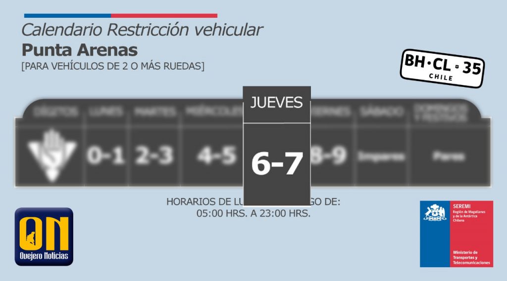 Restricción vehicular en la comuna de Punta Arenas, jueves 24 de septiembre: 6 y 7 Ovejero Noticias 24 de septiembre de 2020 NOTICIAS, PUNTA ARENAS, TITULARES CompartirTwittearCompartirPin0 Compartir