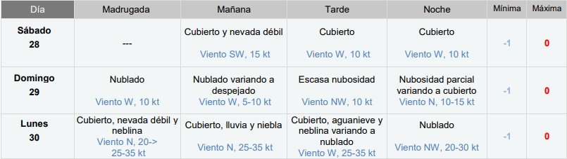 | Última Esperanza | Nublado, viento débil. | Sin novedades |