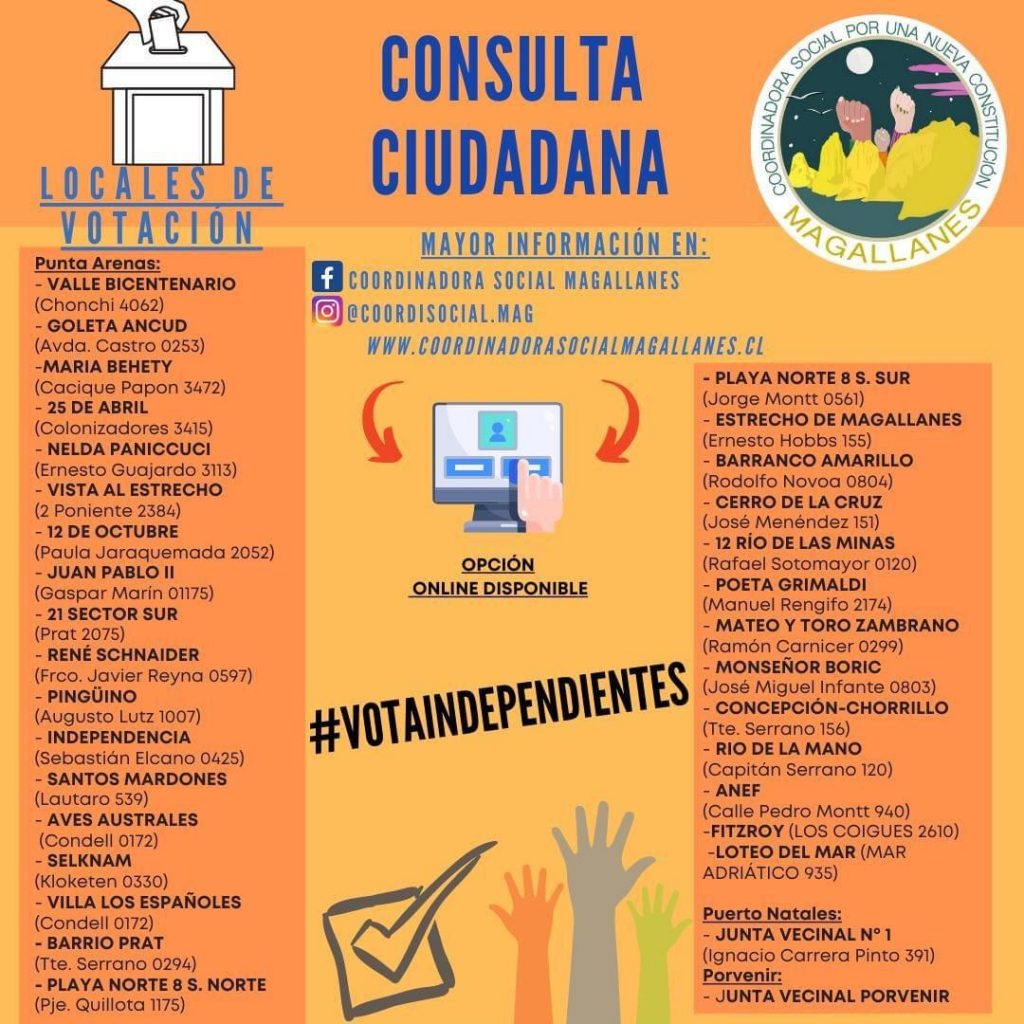 Consulta ciudadana realiza hoy la Coordinadora Social de Magallanes, para elegir candidatos a Convencionales Constituyentes