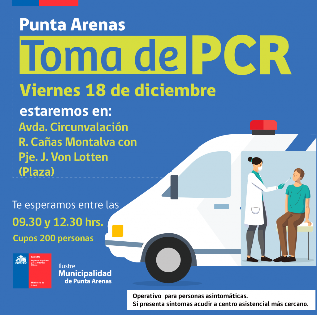 Toma de PCR en distintos lugares de Punta Arenas, Porvenir y Puerto Natales, este viernes 18 diciembre