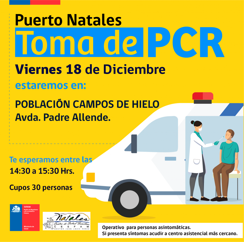 En Natales, la toma de PCR se efectuará en la población Campos de Hielo.